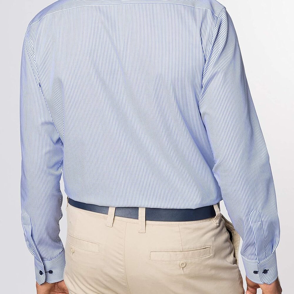 در دوخت این پیراهن کلاسیک از پارچه‌ای باکیفیت استفاده شده که علاوه بر لطافت و راحتی، استایل  مناسبی روی بدن دارد. بافت پارچه به‌گونه‌ای است که در طول روز کمتر چین و چروک می‌شود و حس خنکی و تنفس‌پذیری را حفظ می‌کند. ویژگی‌ای که آن را به گزینه‌ای ایده‌آل برای استفاده طولانی‌ مدت در محل کار یا جلسات رسمی تبدیل می‌کند. یقه کلاسیک با فرم استاندارد، به‌خوبی با انواع شلوار ها ست میشود  و یا حتی به‌ صورت تک لایه قابل استفاده است و ظاهر را مرتب و حرفه‌ای نشان می‌دهد.